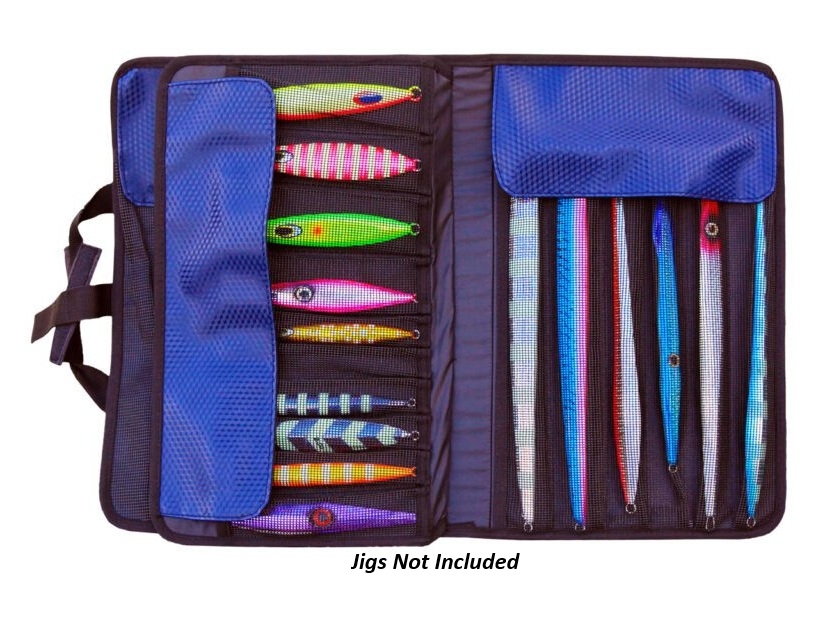 Holds 20 to 30 long or short jigs. Plus 2 mesh pockets for terminal tackle. Double Stitched for toughness.
