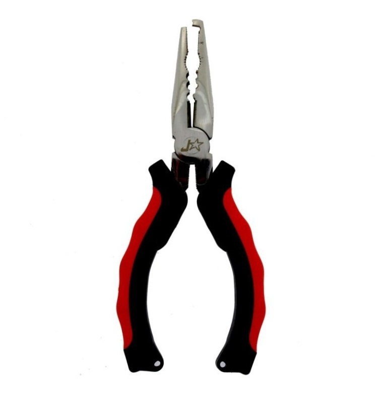 High Carbon Steel. 7" with tungsten line cutters and Crimping facility. Rust resistent finish and ergonomic soft grips.