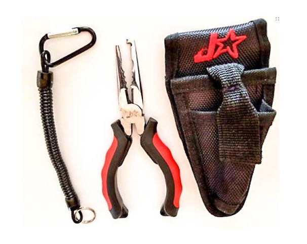 Stainless Steel 5" with Spring loaded handles. Braid and line cutters. Comfortable lockable handles.